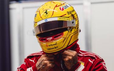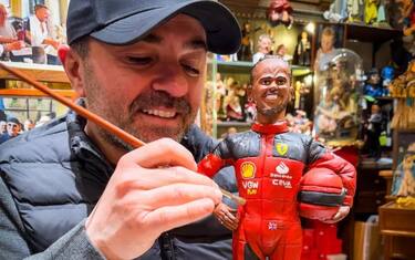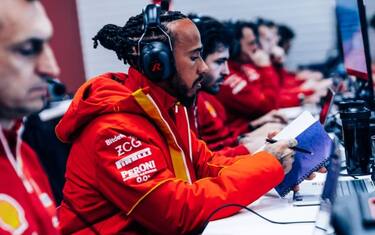 Tuta e casco rosso per l'esordio di Lewis in Ferrari, tra i pastori di terracotta di via San...