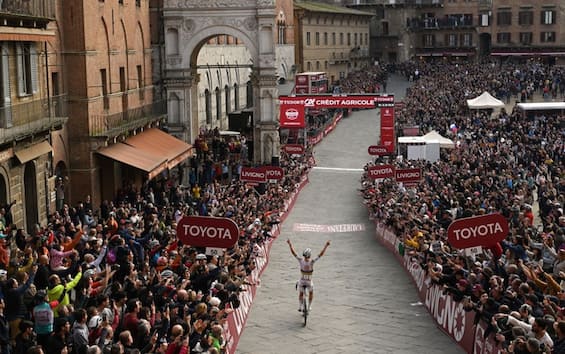 Ancora una corsa epica dello sloveno che entra da trionfatore in piazza del Campo con la maglia...